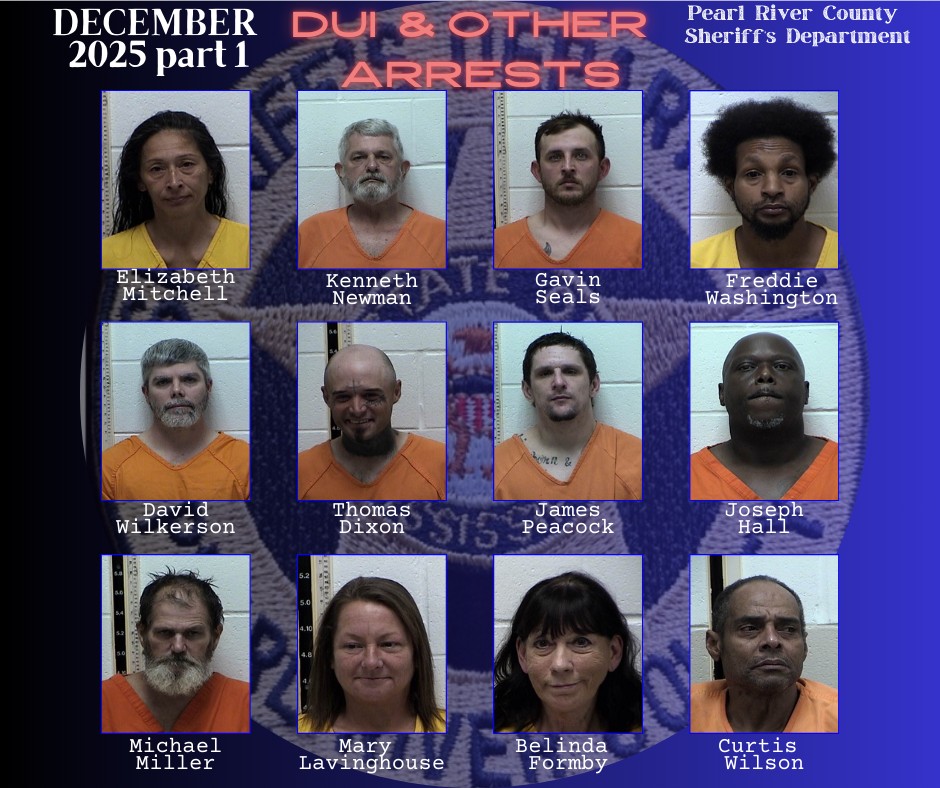 The Pearl River County Sheriff’s Department released its records for DUI arrests during December 2025. Driving under the ...