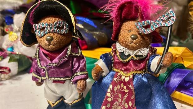 The Teddy Bear House Museum is beautifully decorated for Mardi Gras. The museum features masks and beads, showcasing ...